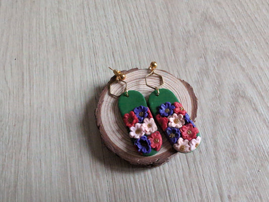 "Flower Burst" Oval Clay Earrings | Bold Multi-Color Blooms