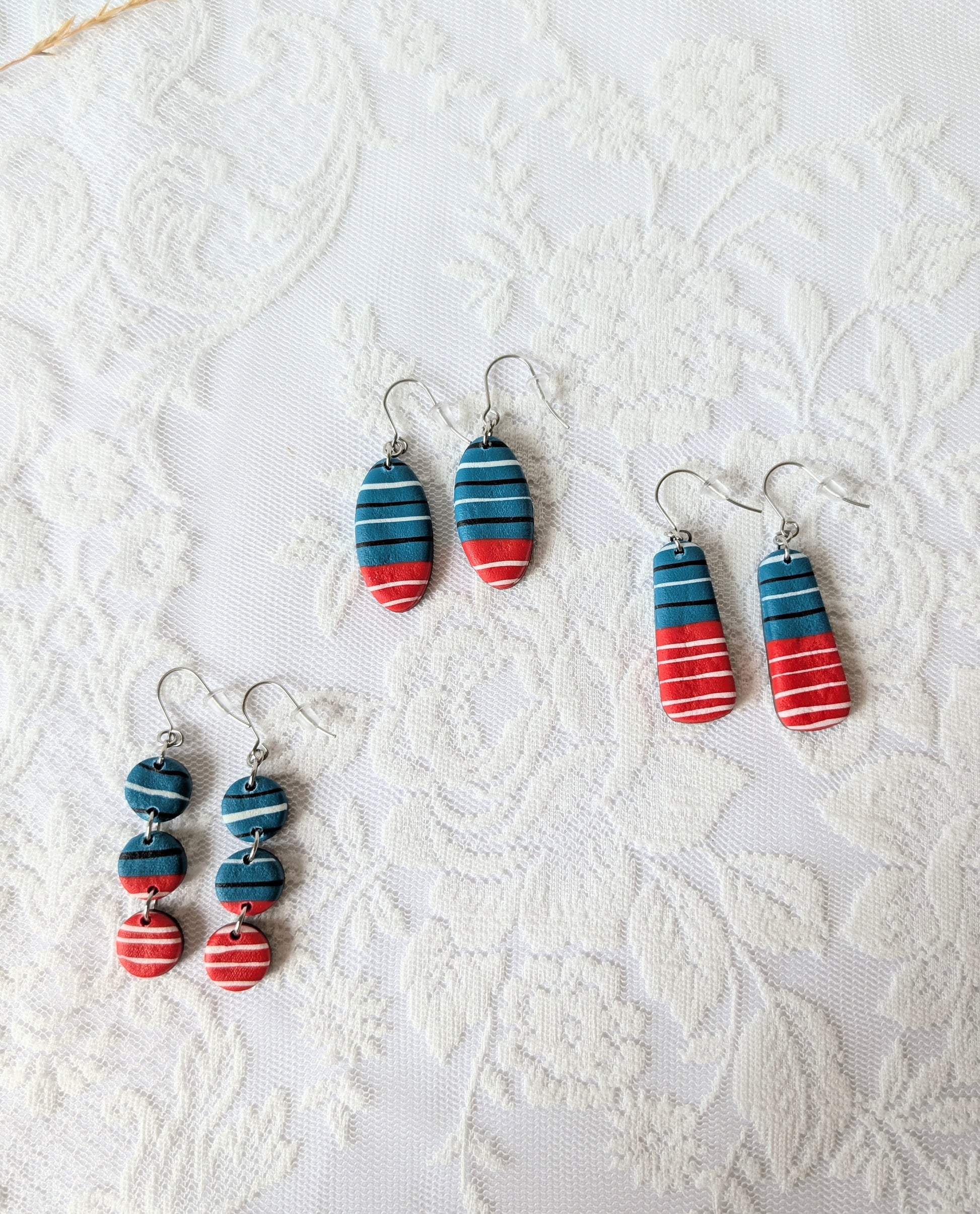 Add a pop of vibrant color to your look with these stunning blue and red polymer clay earrings! Each pair is lovingly handmade, making them truly unique. Lightweight and comfortable for all-day wear, these eye-catching earrings are perfect for adding a touch of artistic flair to any outfit.