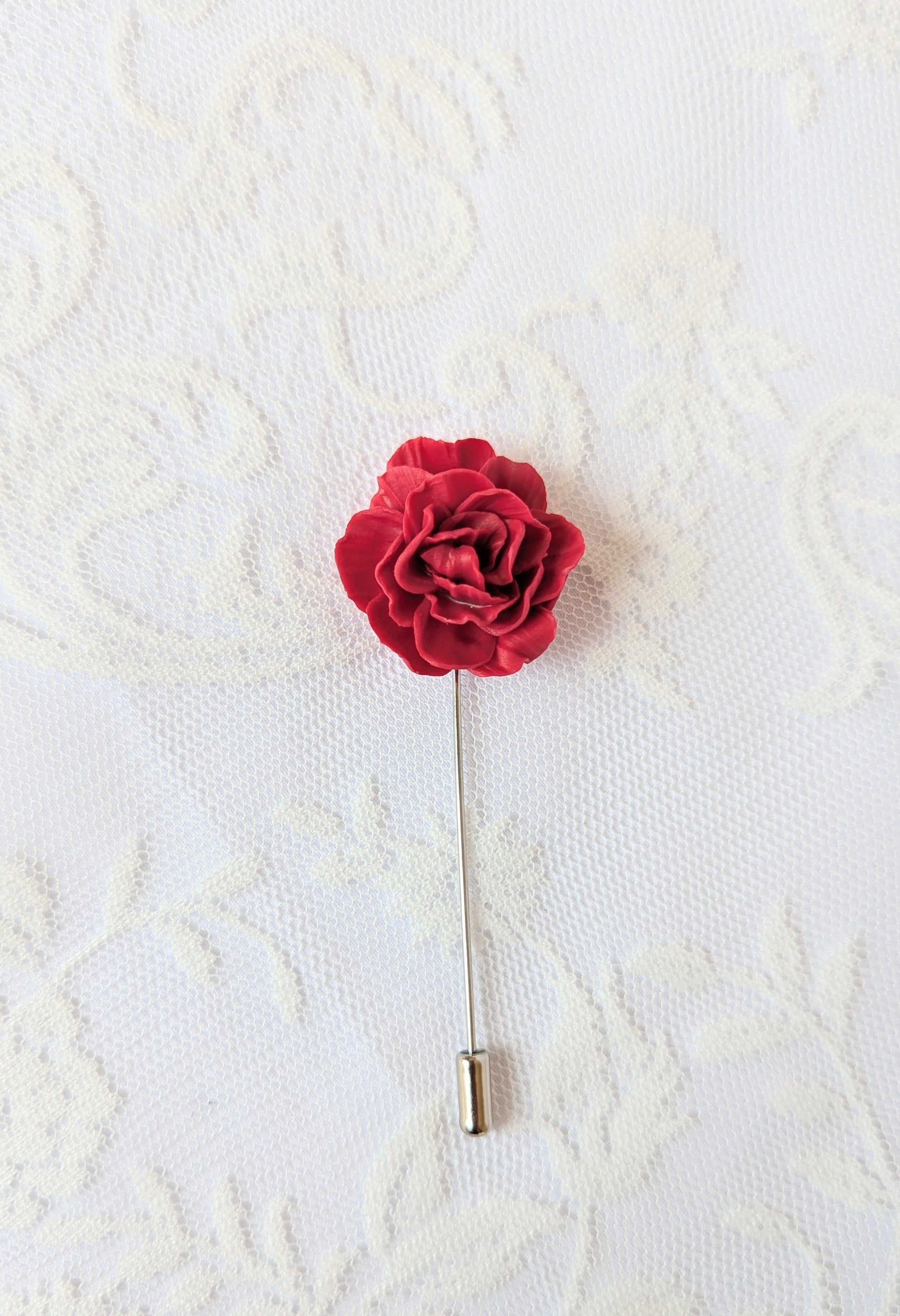 Handmade Polymer Clay Red Peony Brooch