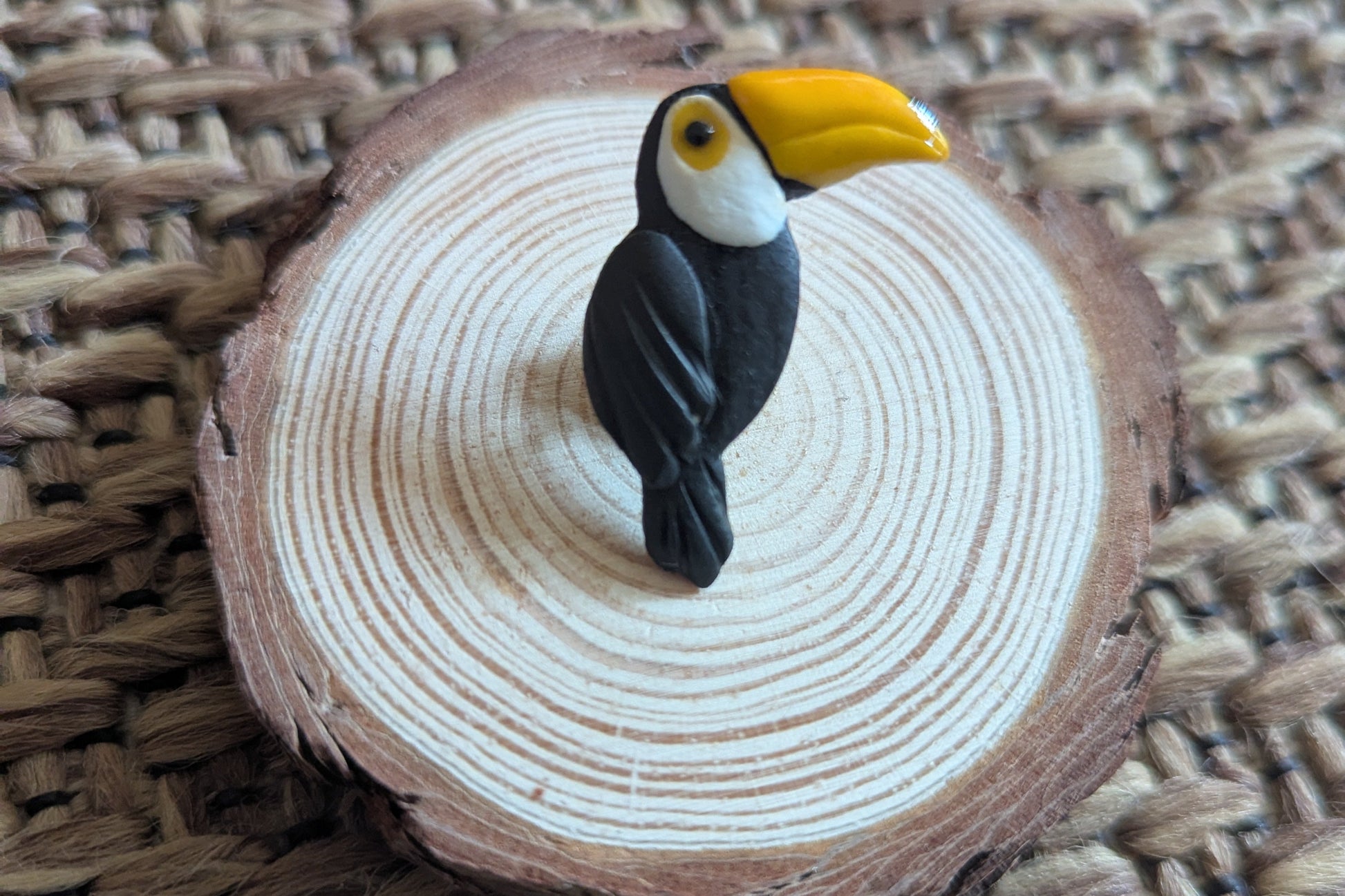 Embrace the exotic with our Handmade Polymer Clay Toucan pendant. Expertly crafted, this vibrant toucan, adds a touch of tropical luxury to any outfit. Bring a splash of vibrant colour to your ensemble with this exclusive piece.